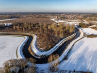 Luchtfoto van de besneeuwde Demer