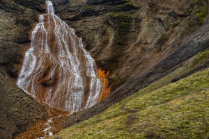 Luchtfoto van het vulkanische landschap in het binnenland van IJsland. De iconische Maelifell rijst op uit de uitgestrekte aswoestijn van Mælifellssandur, omringd door bergen, rotsen en dreigende wolken