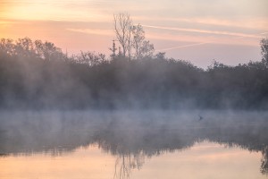 Natuurgebied De Luysen met haar talrijke vijvers gezien vanuit de lucht op een mooie avond in de late zomer.