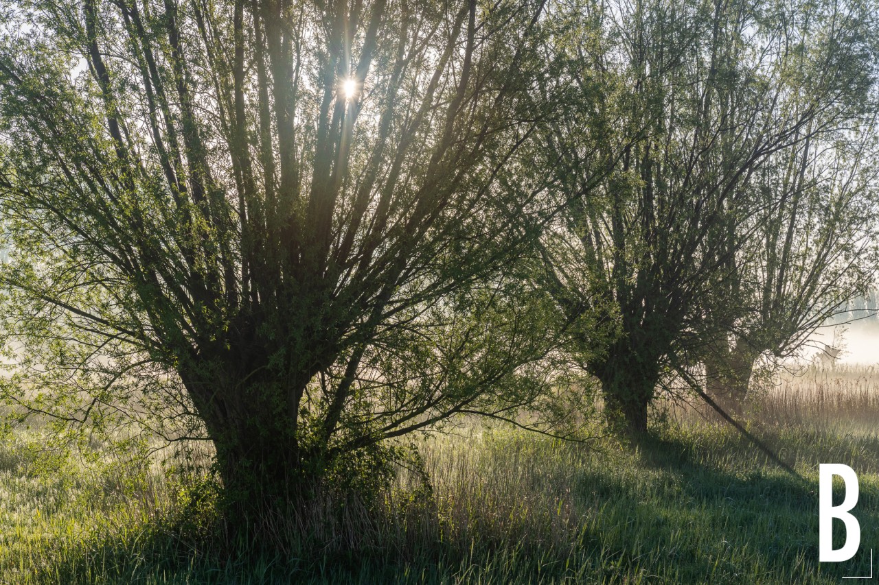 Knotwilgen in de natte weiland van de Assebroekse meersen.