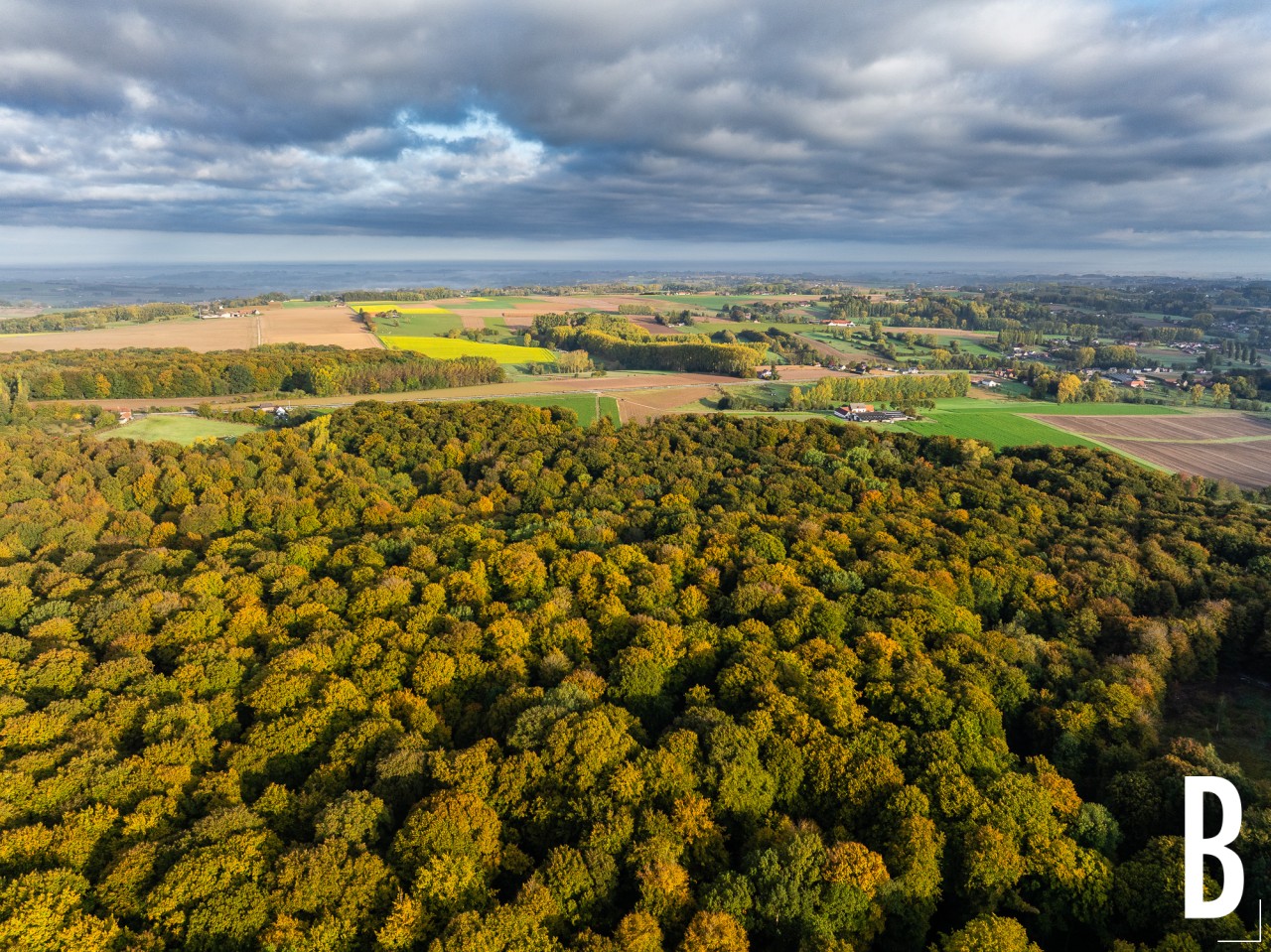 Sfeervolle opname van het bosreservaat tijdens een grijze herfstdag.