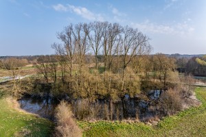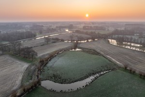 Dronefoto van kasteel ravestein en de meanders van de dijle bij natuurgebied pikhakendonk te hever.