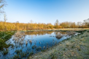 Dronefoto van de natuur in de dijlevallei van hever donk tijdens de winter te hever.