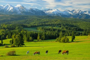 HDR-opname van de gelaagde bergen in de Pieniny tijdens het blauwe uurtje.
