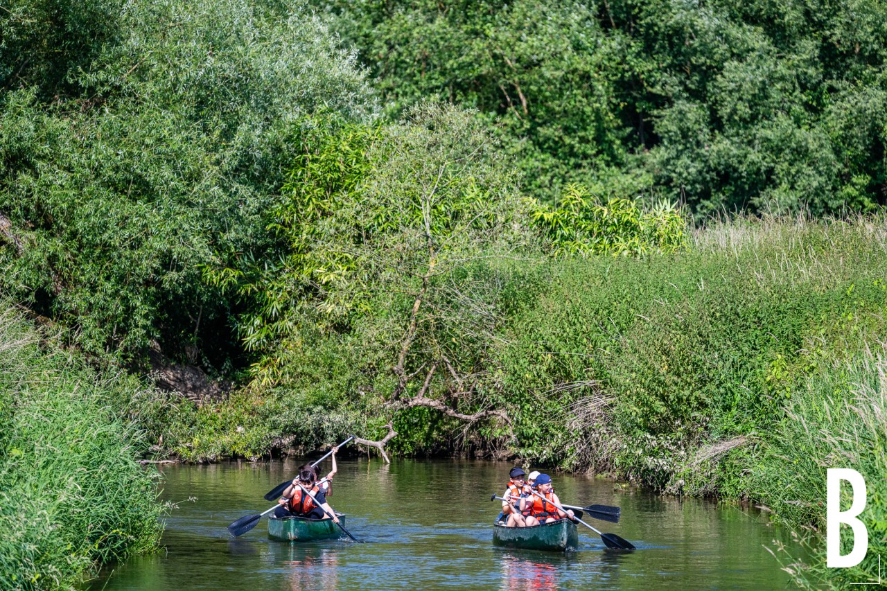 Recreanten varen in kajaks door de prachtige natuur van de Dijlevallei.