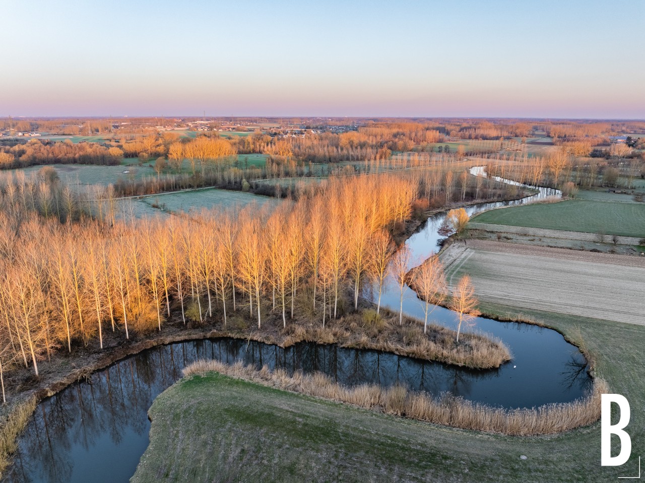 Dronefoto van de dijle in de riviervallei van natuurreservaat wijgmaalbroek tijdens de ochtend te wijgmaal.