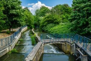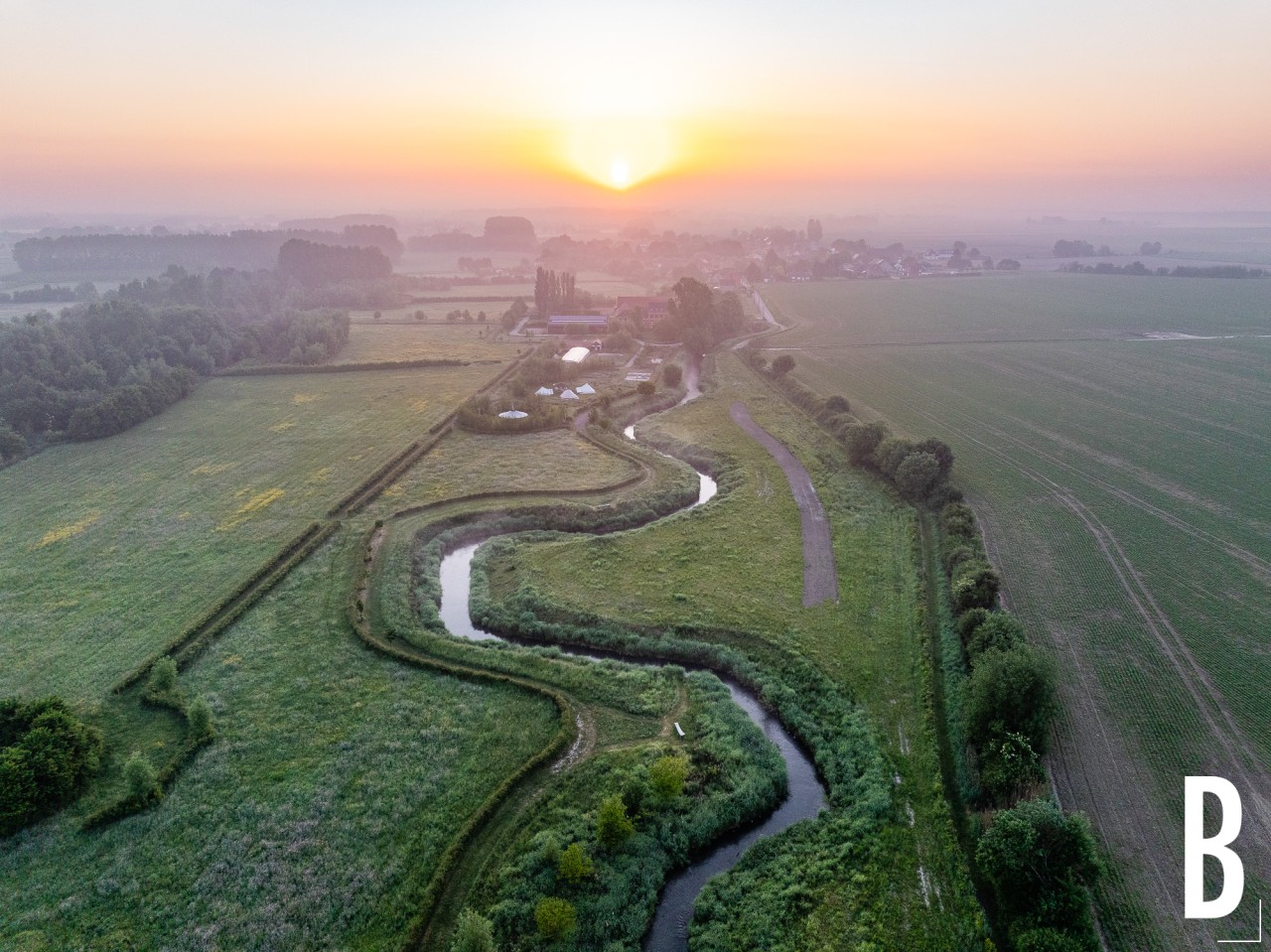 HDR-luchtfoto van de nevelige velden langs de Kleine Gete.