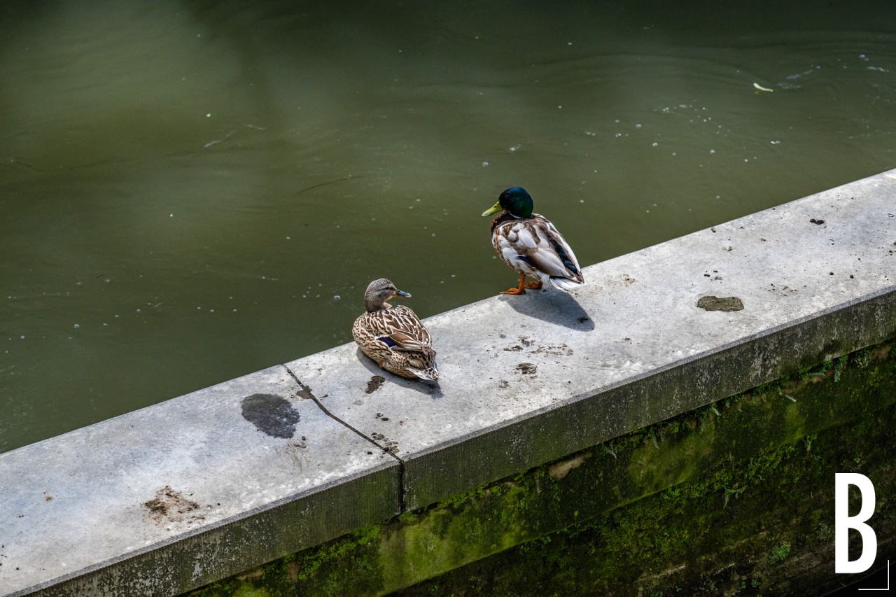 Zicht op de waterloop en de aangepaste oevers in het stadscentrum.