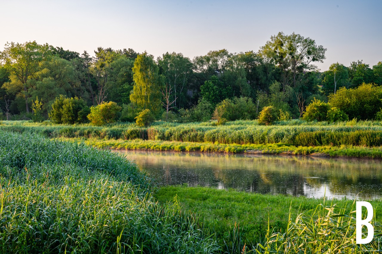 Zicht op de waterhuishouding in de Dijlevallei bij het eerste licht.