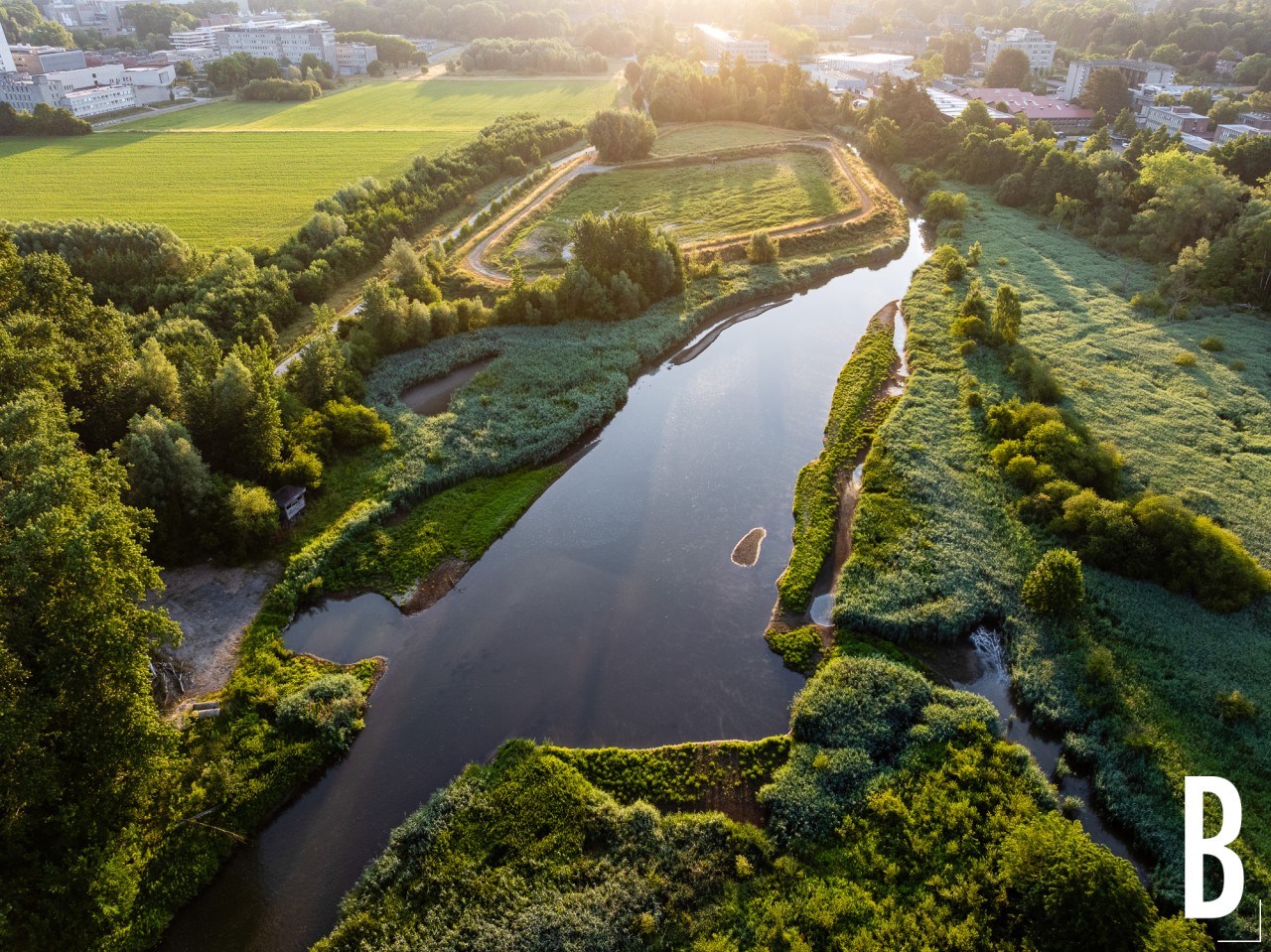 Drone-opname van de Zandvang en het bekken in de ochtendgloren.