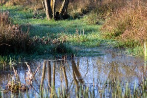 Sfeervol beeld van de rivier omzoomd door bomen in herfsttooi.
