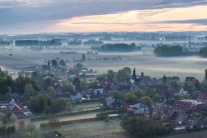 Dronebeeld van de herfstige meersen en de Dijlevallei in Bonheiden.
