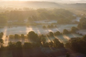 Een tractor aan het werk op de velden langs de Demer tijdens de najaarsoogst.