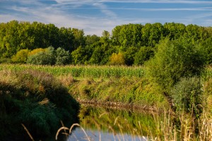 Dronebeeld van de meanderende rivier in een sprookjesachtig wit Testelt.