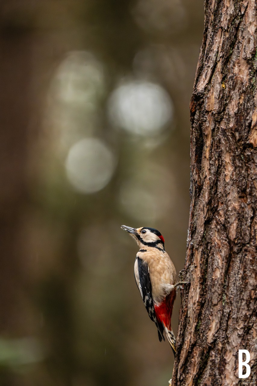 Detail van een grote bonte specht