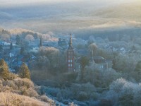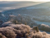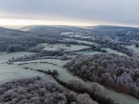 Luchtfoto van een winterse ochtend in Korbeek-Dijle