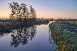 Zicht op een prachtige eik in een besneeuwde weide van de Vlaamse Ardennen.