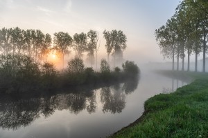 Dronebeeld van het natuurreservaat Moenebroek, waar rijp de takken wit kleurt tijdens de winterprik.