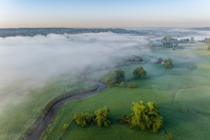 Rivier de Dijle in dijlevallei in vlaams-brabant in het landschap.