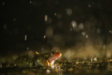 Bruine kikker in de regen