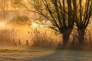 Natuurreservaat De Langemeersen op een mistige, winterse ochtend.