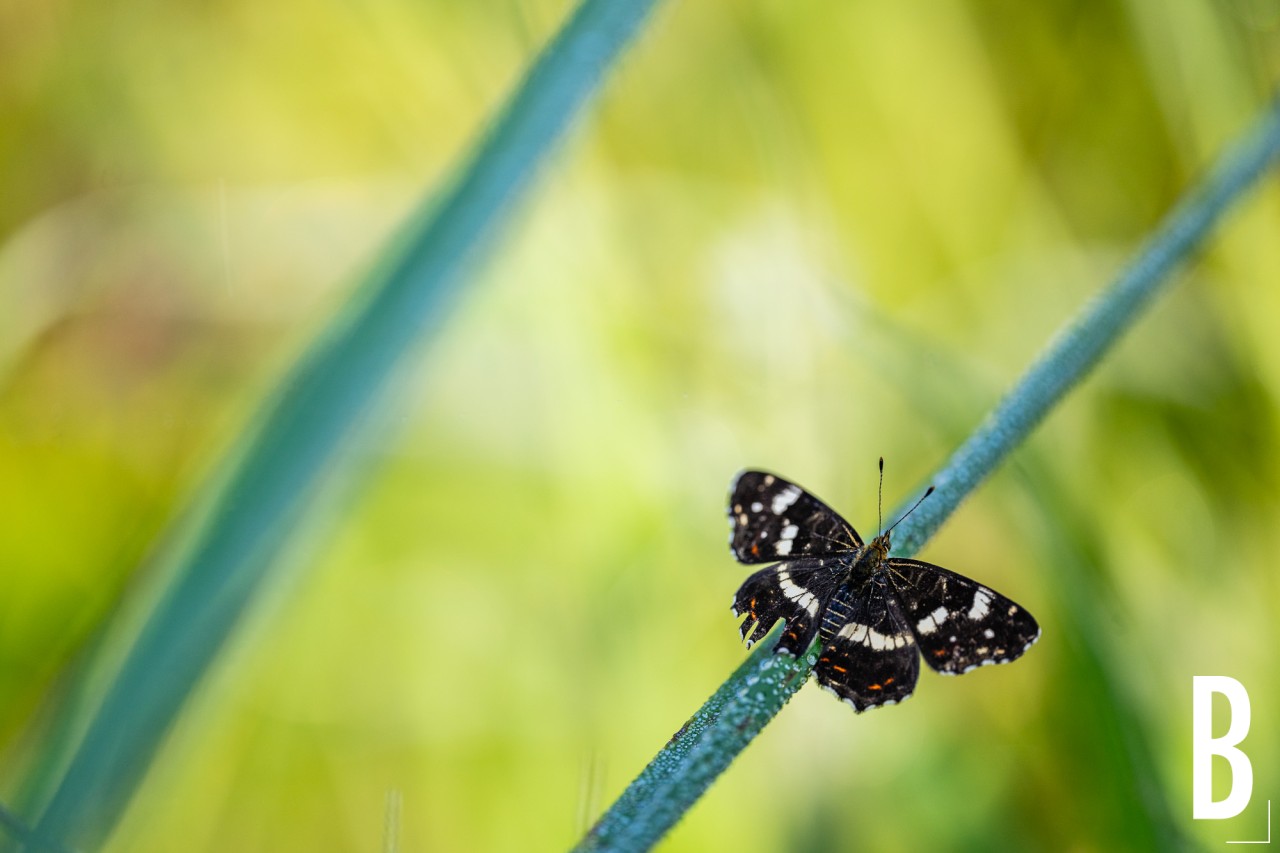 Een landkaartje spreidt de vleugels en warmt zich op in de eerste zonnestralen.