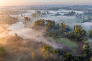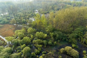 Knotwilgen omgeven door bloeiende boterbloemen en fluitenkruid in de weilanden rondom de Reytmeersen.