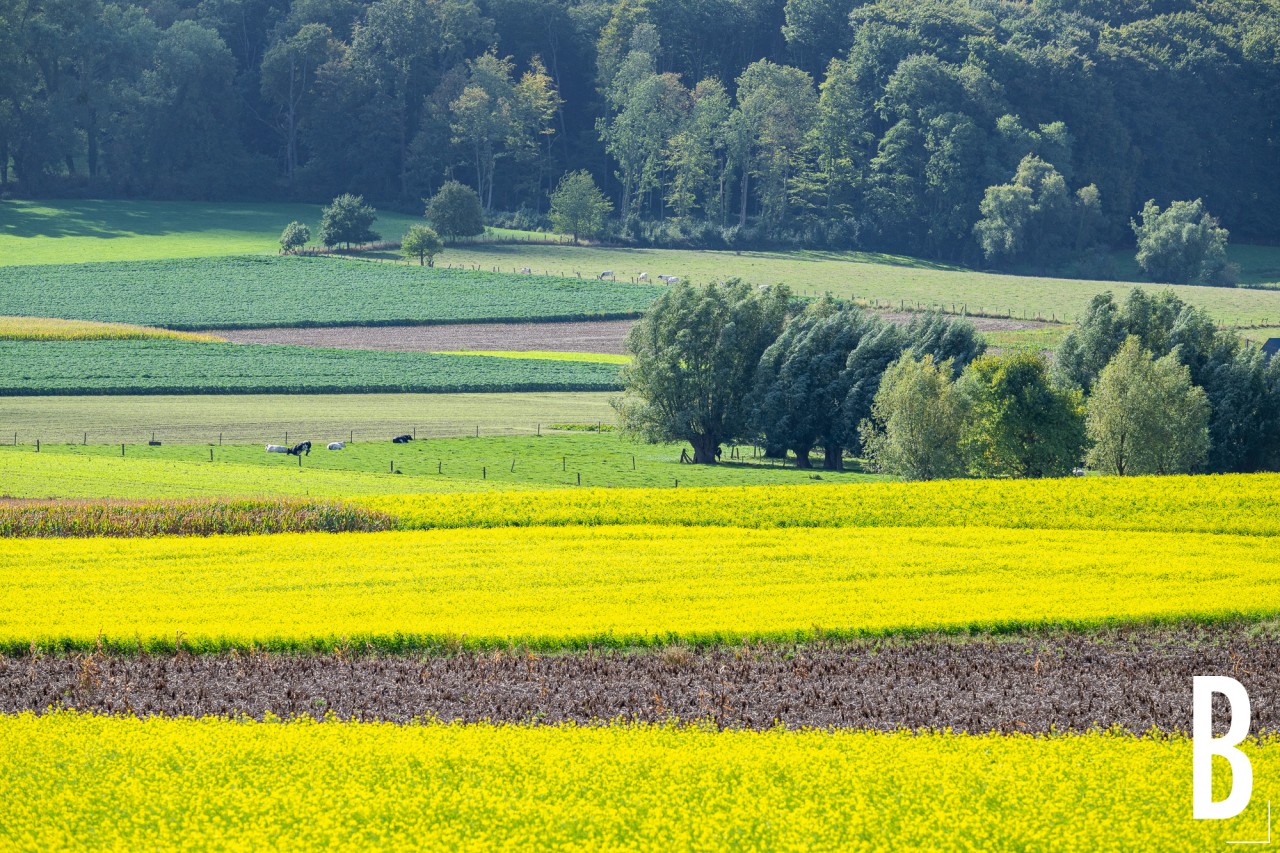 Gezicht op de golvende velden van de Vlaamse Ardennen in het najaar.