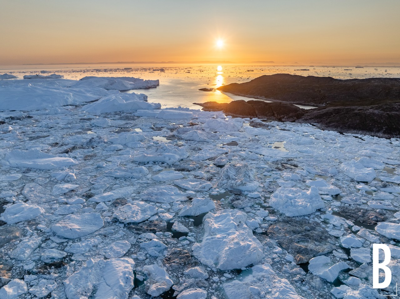 Luchtfoto van abstracte ijsstructuren in de UNESCO Icefjord.