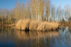 Dronefoto van de dijle in de riviervallei van natuurreservaat wijgmaalbroek tijdens de ochtend te wijgmaal.
