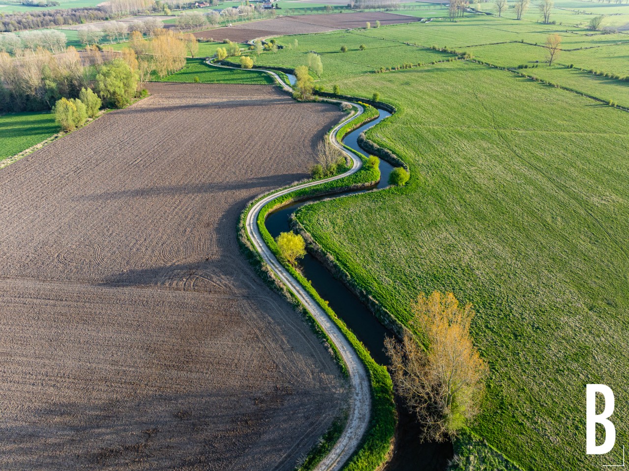 Dronebeeld van de uitgestrekte akkers rond Drieslinter.