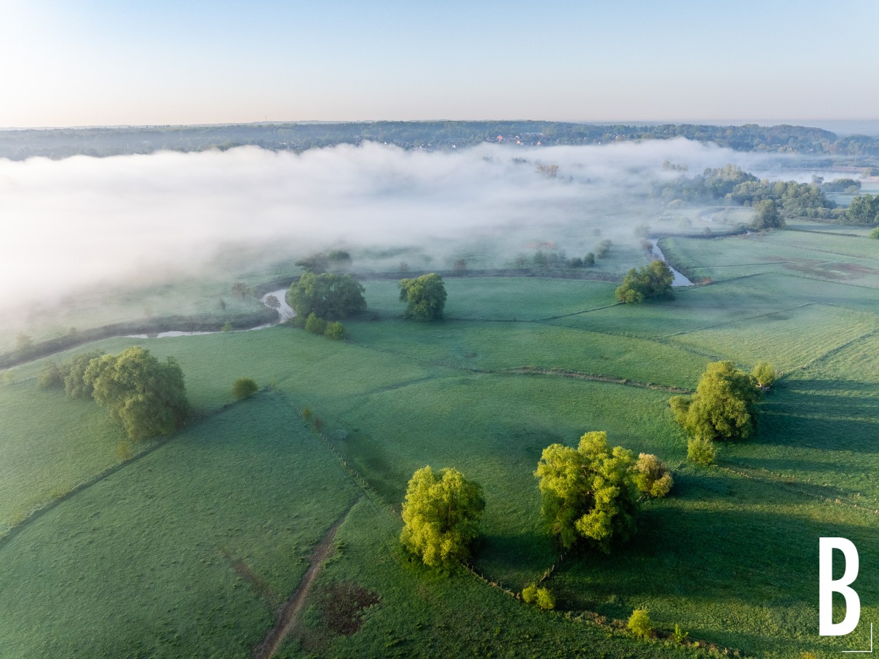 HDR-dronebeeld van de ontwakende Dijlevallei.