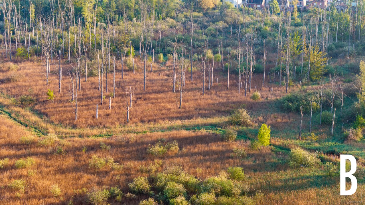 Gouden licht weerspiegelt op het moerasoppervlak.