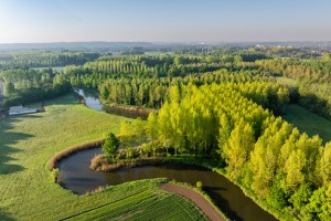 Bovenaanzicht van het natuurreservaat bij zonsopgang.