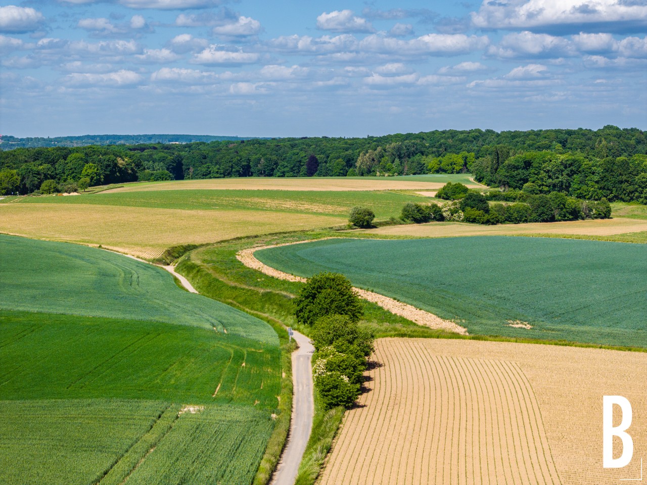 Luchtfoto van het weidse agrarische landschap in de lente.