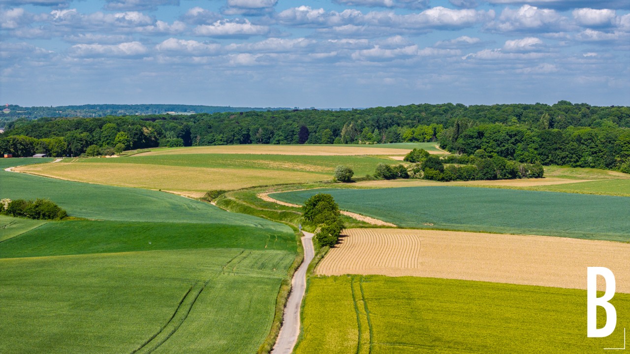 Luchtfoto van het weidse agrarische landschap in de lente.