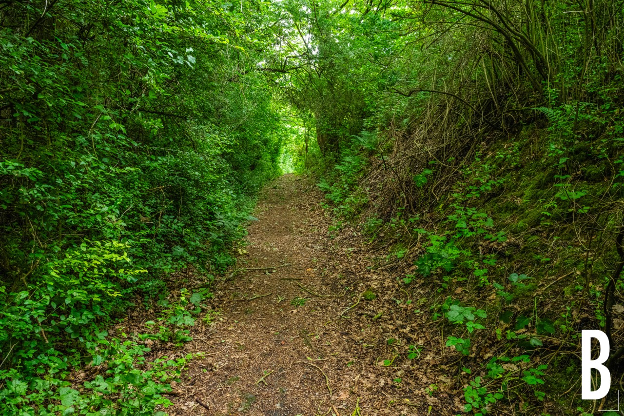 Sfeervol beeld van een diep ingesneden pad in het landschap.