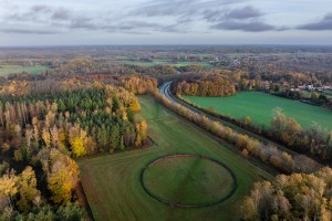 Sfeervolle lagen van mist en bomen in het eerste zonlicht.