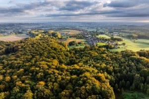 Sfeervol beeld van silhouetten op de heide tijdens zonsopgang.