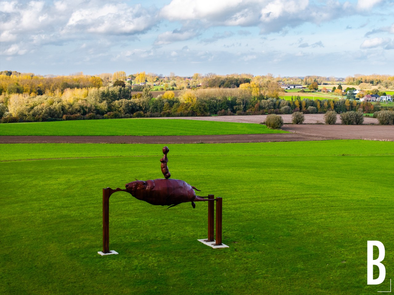Luchtfoto van de indrukwekkende sculptuur in het landschap van het Pajottenland.