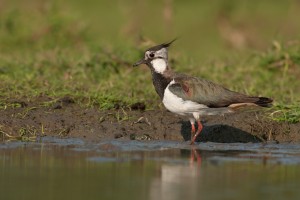 Een kievit (Vanellus vanellus) aan de waterkant in de Scheldemeersen te Zingem.