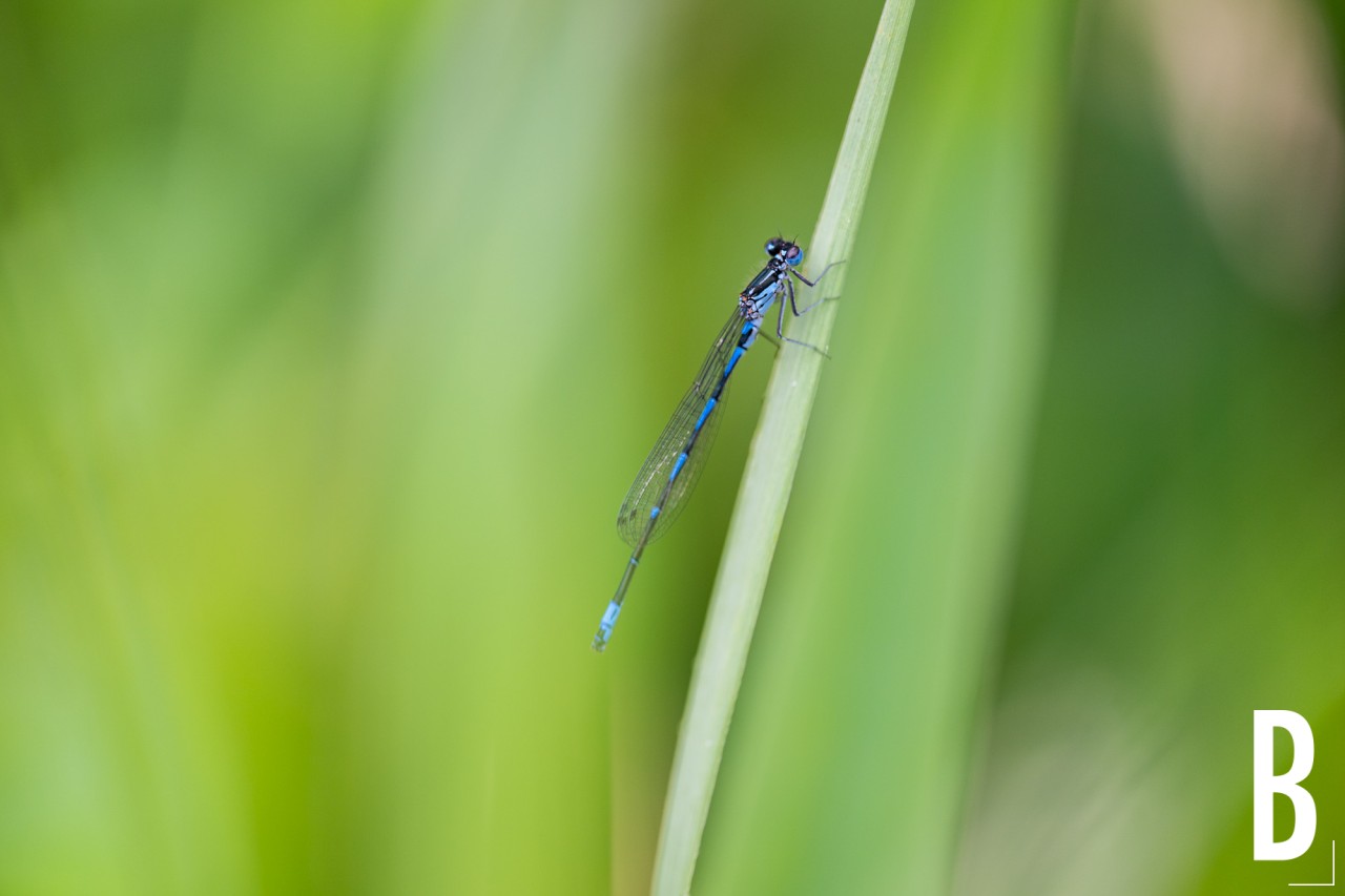 Variabele waterjuffer rusttend tussen de vegetatie in natuurgebied het Torfbroek.