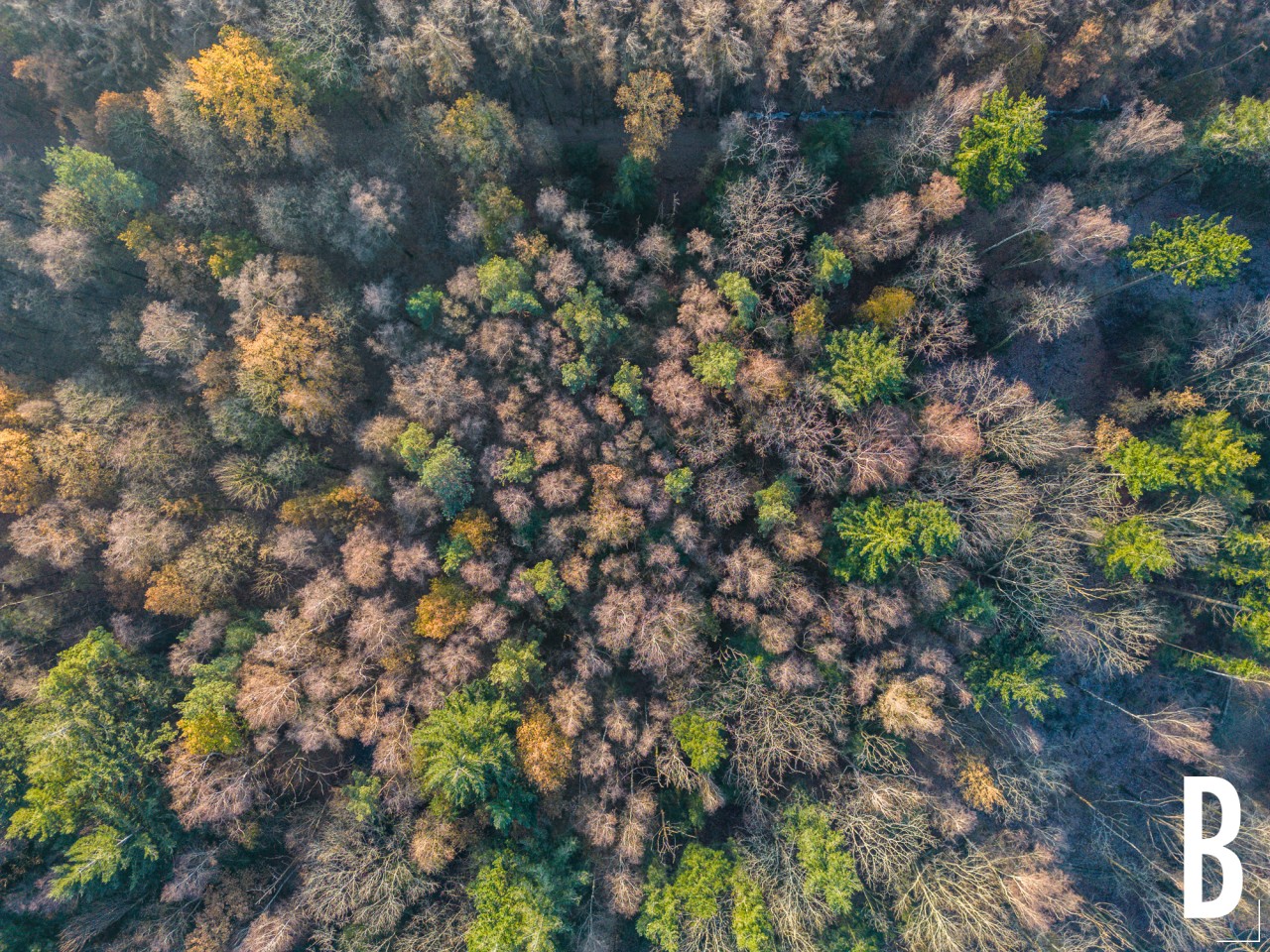 Abstract beeld van de boomtoppen in het Madegemveld, gezien vanuit de lucht