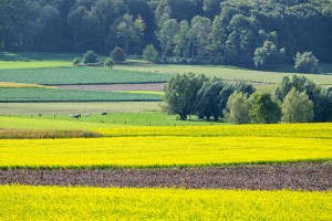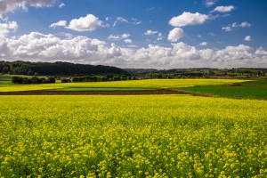 Zicht op de historische windmolen omringd door gele bloemen in Mater.