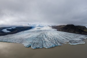 Herfstkleuren sieren de toendra rond Fjallsárlón, een gletsjermeer aan de voet van Fjallsjökull in Vatnajökull National Park, IJsland. De bergen en het ijs contrasteren prachtig met de warme tinten van het najaar.