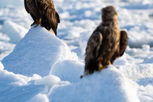 Zicht op de boten in de haven van toetoko tijdens de winter op hokkaido te saroma.
