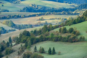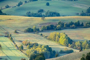 Vroege herfstochtend in de rollende heuvels van Mala Fatra Nationaal Park