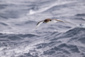 Een Antarctische stormvogel zweeft sierlijk boven de golven van de Zuid-Atlantische Oceaan. Op zoek naar voedsel trotseert hij moeiteloos de wind en golven.