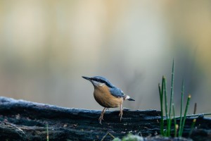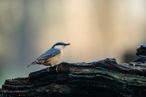 Een boomklever (Sitta europaea) in karakteristieke houding op een boomstam.