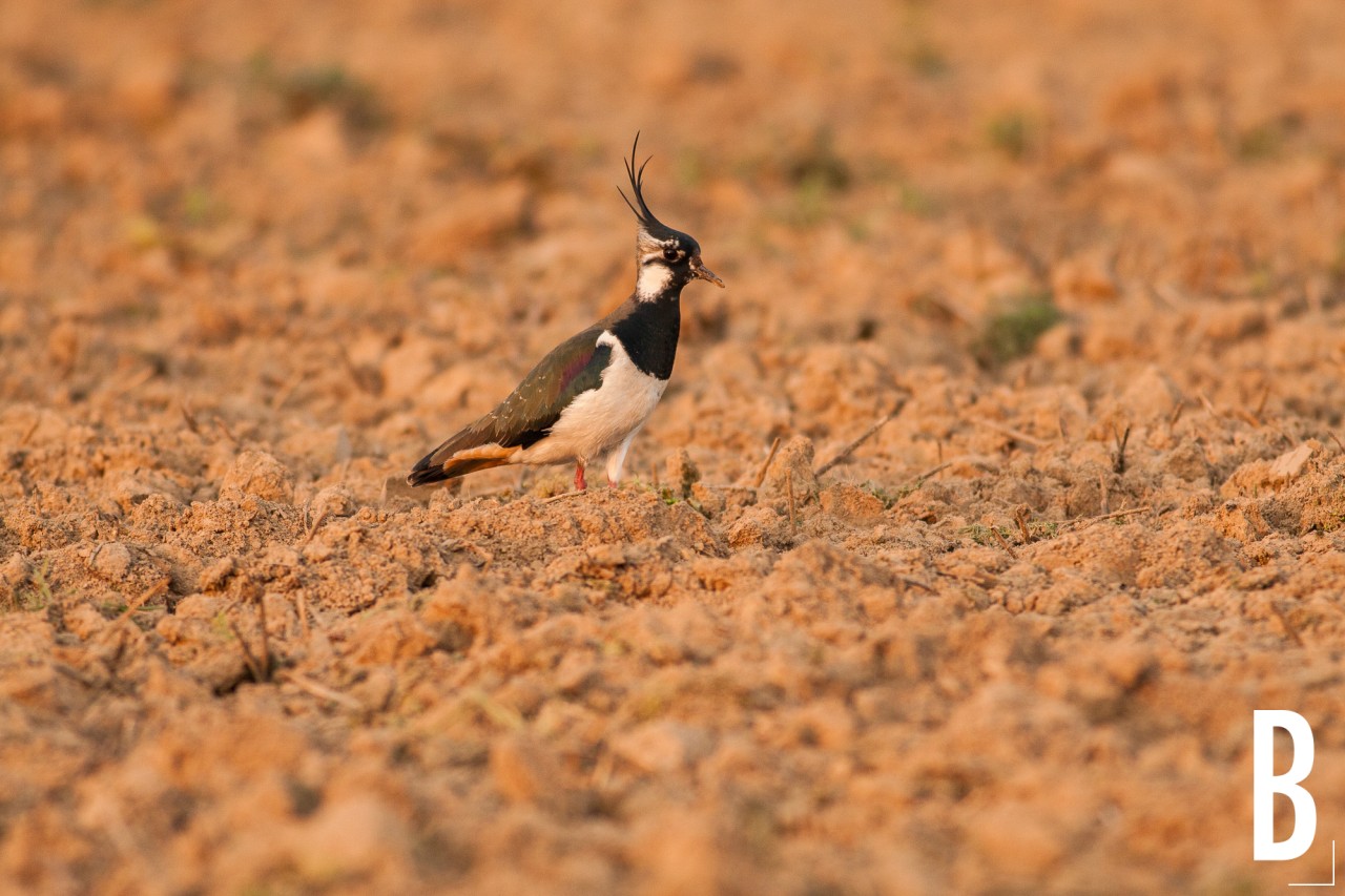 Een kievit (Vanellus vanellus) rustend op een akker in Zingem.